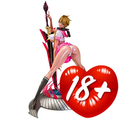 Rui Asuka from the doujinshi series "Magical Girl" drawn by the popular illustrator Raita is now a fantastic figure from Daiki Kogyo! Her bold pose and tiny sailor suit make this figure unforgettable, as well as her immense sword! The front of her shirt and her panties can be removed if you'd like to display her with less coverage; an interchangeable surprised facial expression is included, as is an alternate lower body and a liquid part. She can also be displayed with or without her large bejeweled collar and sword. Her uniquely shaped base is included too. Order her for your own private collection today!