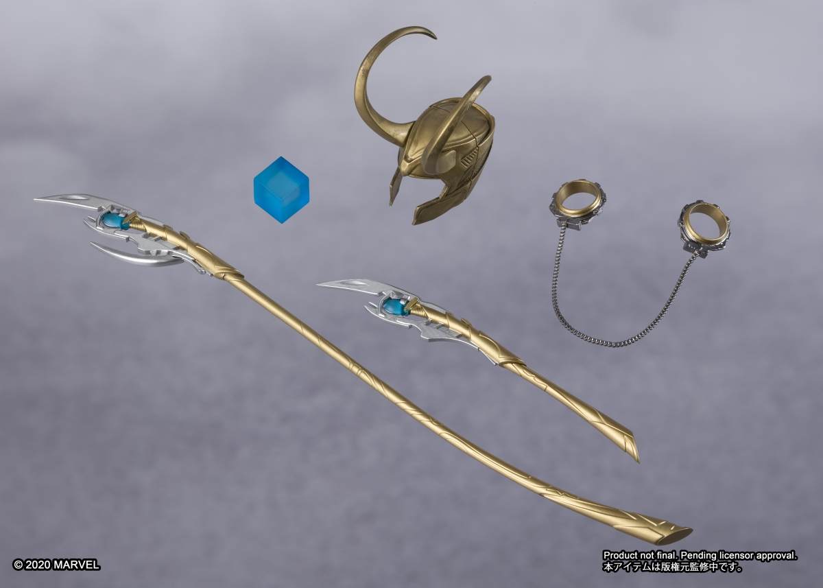 Loki joins S.H.Figuarts in his armored look from "Avengers"! In addition to the handcuffs and mouth restraint that replicate the scene where he was captured, a variety of optional parts are included, such as his staff (extended/stored), the Tesseract, and an optional mischievous smirk face part.