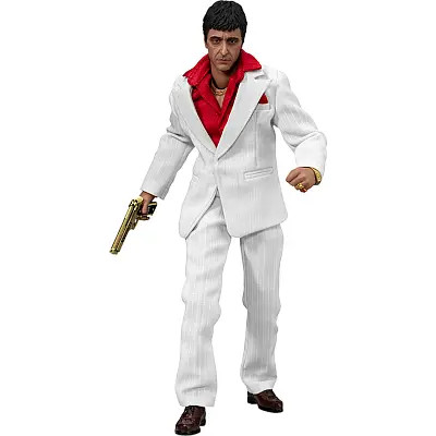This collectible figure is meticulously crafted using advanced 3D technology and precision sculpting techniques to faithfully recreate Tony’s most recognizable appearance from the film. Dressed in a sharply tailored white suit made of real fabric, paired with a bright red shirt, Tony comes equipped with his signature golden handgun and rifle. The iconic facial scar and fierce, cold expression are brought to life with high-quality paintwork, perfectly capturing Tony’s ruthless persona.
