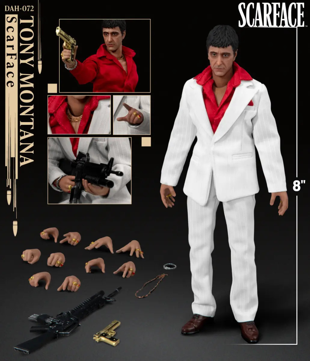 The legendary gangster Tony Montana from the classic crime film Scarface makes a bold debut in Beast Kingdom’s Dynamic 8ction Heroes (DAH) series! Step into 1980s Miami and witness the dramatic rise and fall of one of cinema’s most iconic mob figures.