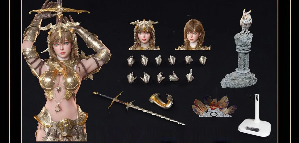 This high-quality, stunning action figure stands at around 11.8 inches and comes with various interchangeable hands, a sword, a rhyton, and a trusty companion.