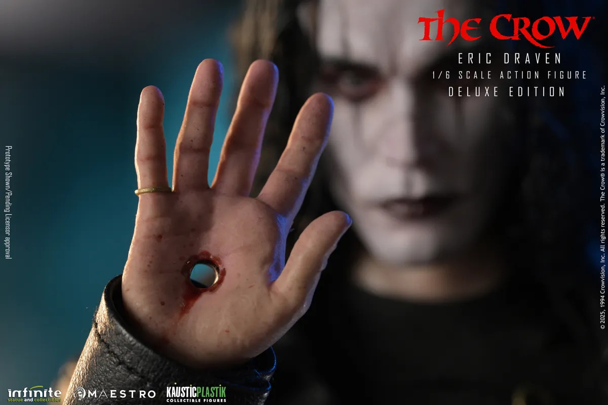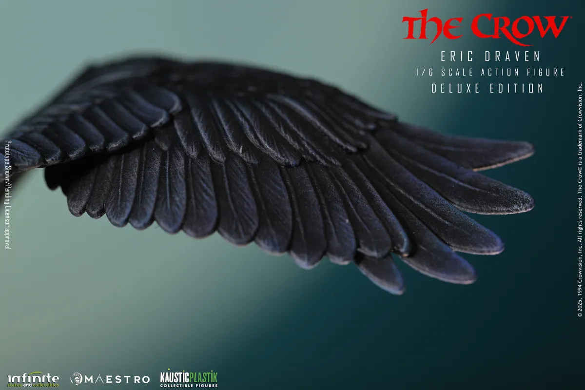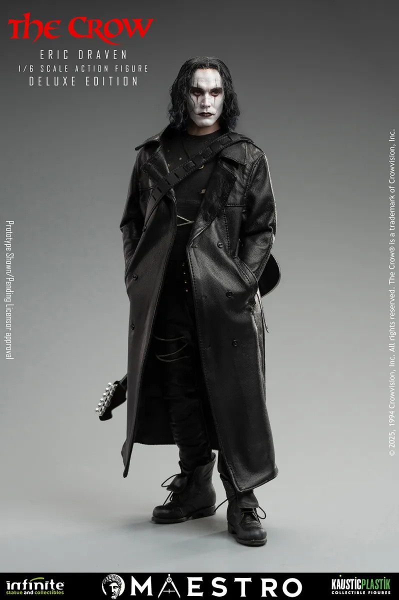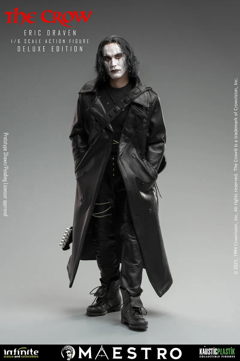 The debut release, Eric Draven – The Crow 1:6 scale, pays tribute to one of cinema’s most unforgettable characters. The artistic team worked with deep respect and precision to capture not only the likeness but also the emotional intensity of the role. The hair is crafted from Tibetan Lamb wool, fully hand-implanted strand by strand to achieve a natural, lifelike effect.The clothing, made from genuine high-quality leather, features authentic textures, folds, and natural aging that elevate the figure’s realism.