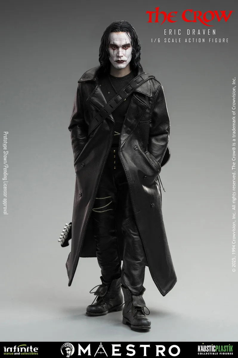 The debut release, Eric Draven – The Crow 1:6 scale, pays tribute to one of cinema’s most unforgettable characters. The artistic team worked with deep respect and precision to capture not only the likeness but also the emotional intensity of the role. The clothing, made from genuine high-quality leather, features authentic textures, folds, and natural aging that elevate the figure’s realism.