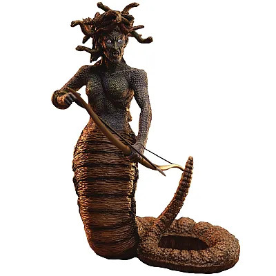 Crafted entirely from durable vinyl, Medusa’s form prioritizes both longevity and lifelike texture. Her arms and select serpents within her hair feature subtle bendability, allowing you to adjust her pose for dramatic, battle-ready displays—no visible joints or seams disrupt her monstrous silhouette. The figure captures her iconic aggression: her left hand grips a bow with an arrow permanently notched and ready to fire, locked in mid-attack for eternal cinematic tension. Relive her climactic defeat by detaching her head, recreated with chilling precision to mirror the film’s legendary decapitation scene.