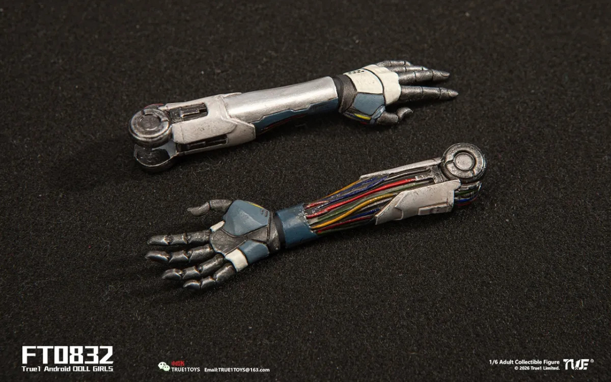 - 1 pair of semi-mechanical gloved hands (relaxed pose)