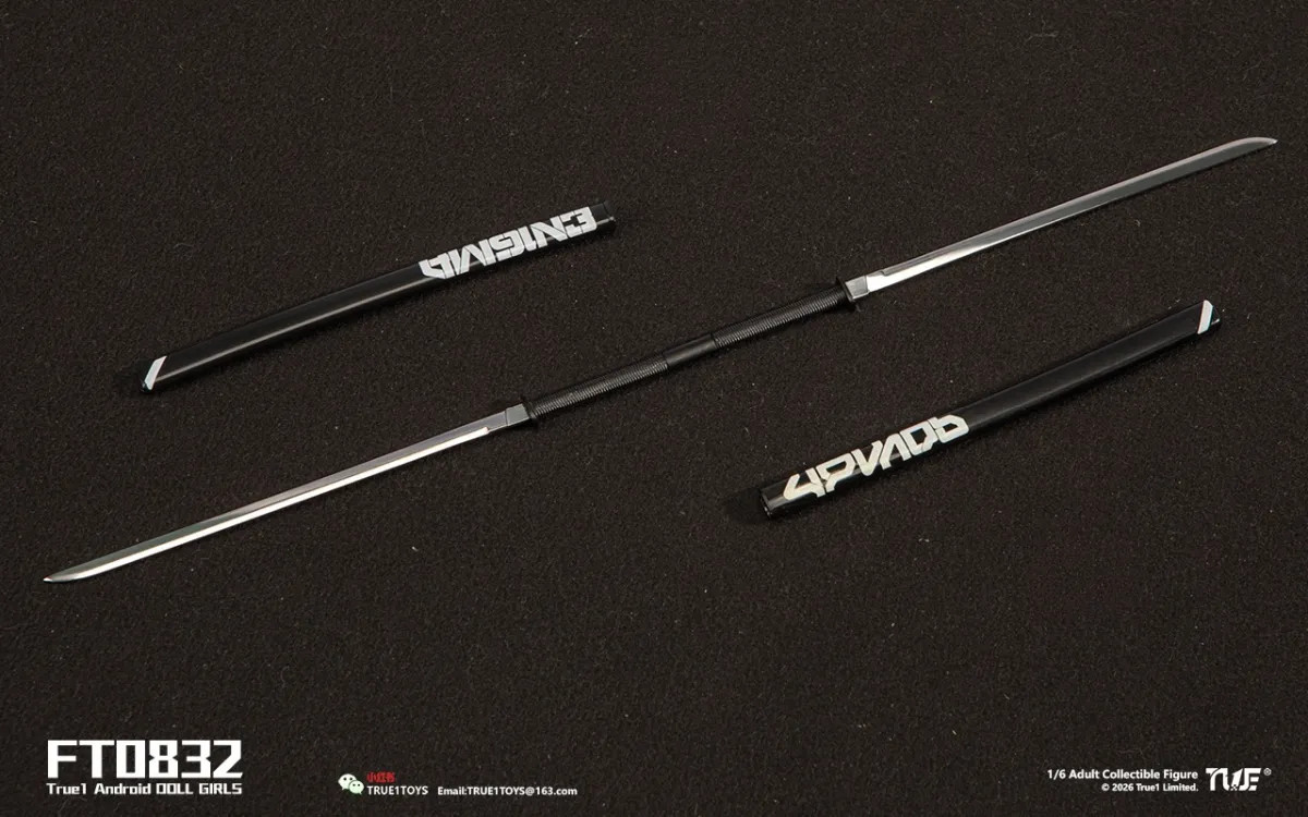 - 1 pair of cyber dual blades (can be combined into a long sword with connector)